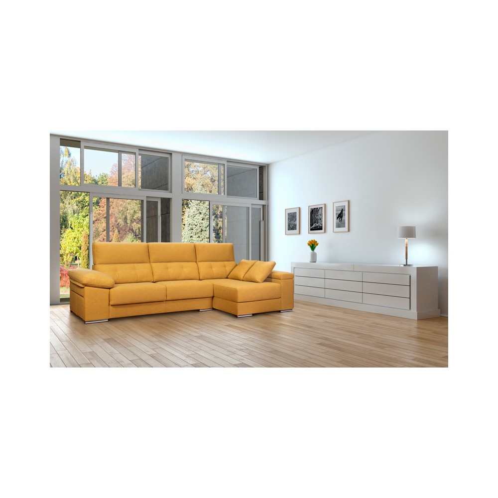 Con un diseño elegante y convencional, esta chaise longue es sin duda un acierto seguro. Sistema extensible por puntos y cabezales reclinables con 5 posiciones. Un bloque de asiento de diseño especial para aportar un confort y durabilidad increíbles. Dispone de serie de arcones en los brazos y el chaise longue y puf en el brazo corto.